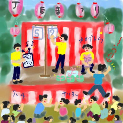 (おえかきツール) キーワード :夏祭りだぁ ♪ 2007年8月26日 夏休み最後の日曜は、ご近所総出の夏祭り ♪ 屋台に イベント、最後はお楽しみ ビンゴ~ 油絵を描いてみました ??? (汗) なつかしの、エレキバンド テケテケテケ~~~ 楽しい一日でした~…