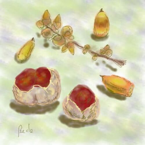 近所の公園で足元を見ると、いろんなドングリが落ちています。 見上げた大きな木に、いっぱいなってるよ。 何の木の実かしら? シイ、カシ、クリ、ブナ、トチノキ、クヌギ ・・・。 紅葉やドングリシリーズ 2008 (おえかきツール) モミジとドングリの写真…